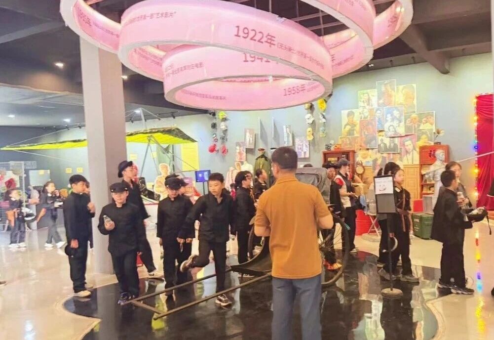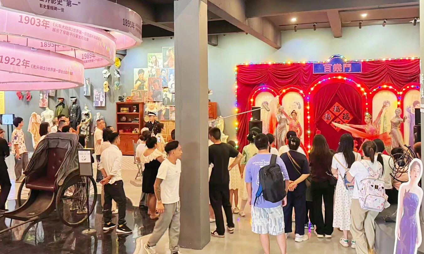基地人气场馆双节欢声不断,是让每位游客都能轻松参与、乐在其中的电影文化体验空间。游客在影视道具展区前互动,留下有趣的合影与体验。