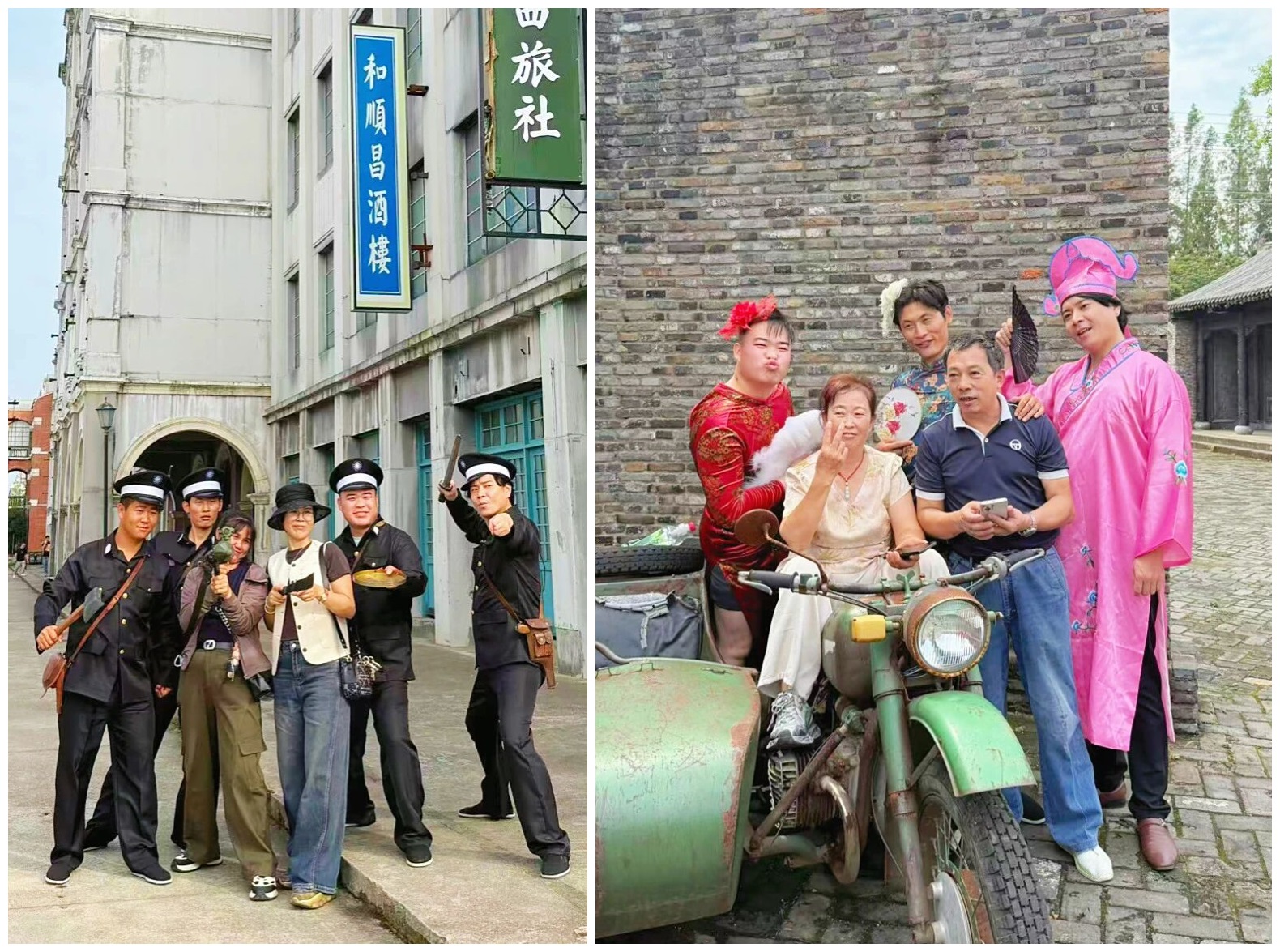 每个NPC都是演技派!这个双节在基地民国街巷间穿行,游客偶遇“民国警察”现场“飙戏”,感受沉浸式穿越。