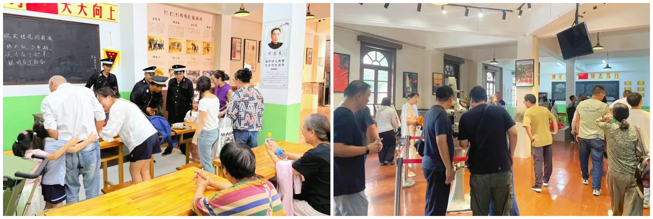 怀旧教室场景,课桌椅、黑板、标语复刻年代感,瞬间穿越回童年课堂;