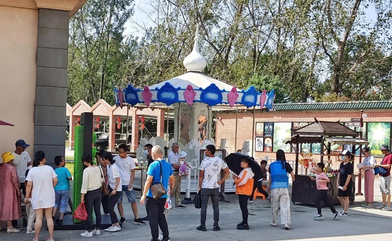 ①乘坐公交来的游客